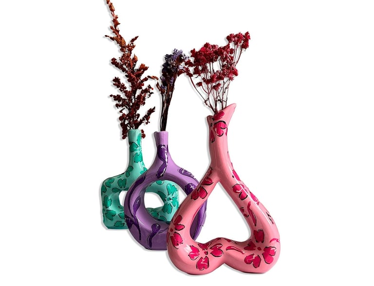 Creados a partir de mi viaje a Pasto y de la forma en que allí el color, la fiesta y el oficio conviven en lo cotidiano. Están inspirados en las formas de la técnica del mopa-mopa, una tradición artesanal nariñense que entiende la ornamentación como identidad y memoria.