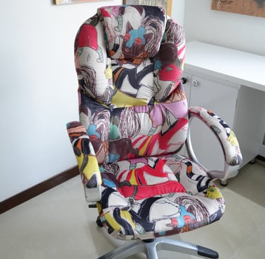 inspirada en las obras realizadas por distintos artistas en el proyecto Las Gatas del Río, en Cali. Retoma el gesto de intervenir un objeto urbano para convertirlo en un soporte artístico, trasladando esa idea al mobiliario. Es una pieza que dialoga con la ciudad, el arte público y la memoria visual caleña.